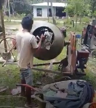 The man in this video witnesses the idea that everything is possible by turning a cement miller into a washing machine. Fill with Water into the New Washing Machine Put in the clothes