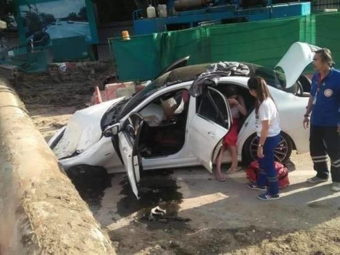 Somewhere in the city of Bangkok, Thailand, a car got its front part totally destroyed by a big iron casing falling from a crane. Luckily, this terrifying accident didn’t cause any death among the passengers in the car.